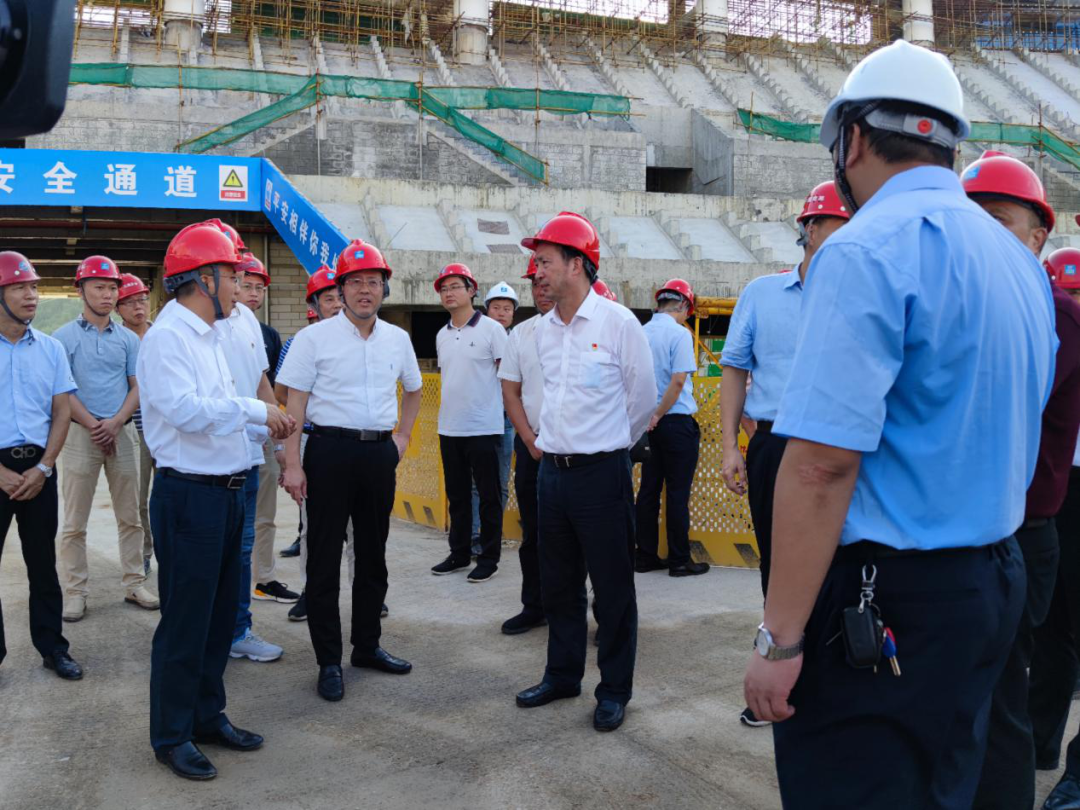 2020年9月17日下午,福建省副省長李德金、福建省住建廳廳長林瑞良、南平市副市長黃蘇福、武夷新區(qū)管委會副主任吳曉平、武夷新區(qū)管委會規(guī)劃建設(shè)局局長陳國民等領(lǐng)導(dǎo)一行,蒞臨我司監(jiān)理的武夷新區(qū)體育中心工程項目開展調(diào)研。我司總經(jīng)理助理兼南平分公司經(jīng)理李禮治及項目部人員全程陪同調(diào)研。