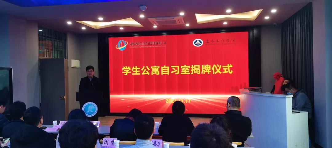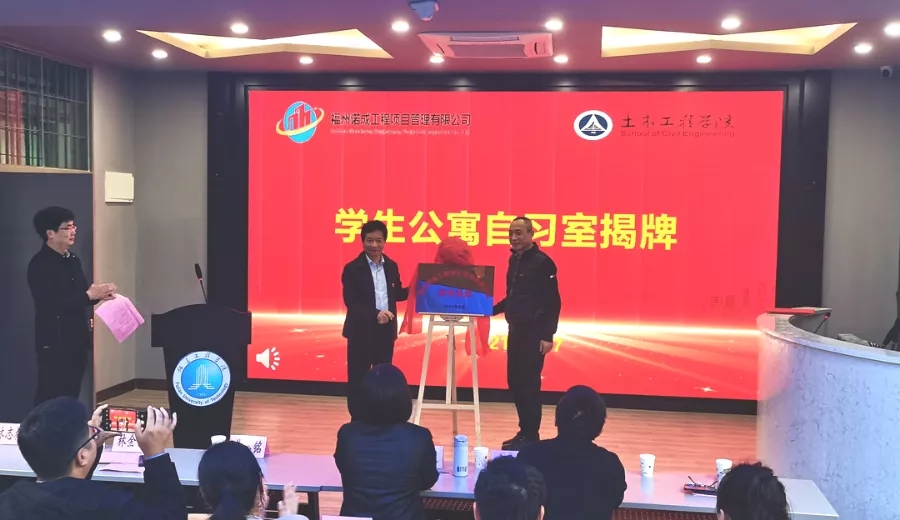 2021年11月17日下午,由福州諾成工程項(xiàng)目管理有限公司捐資助建的“學(xué)生公寓自習(xí)室”揭牌儀式,在福建工程學(xué)院土木工程學(xué)院會(huì)議室里隆重舉行,標(biāo)志著由公司首個(gè)捐建的學(xué)生自習(xí)室工程項(xiàng)目正式落地。