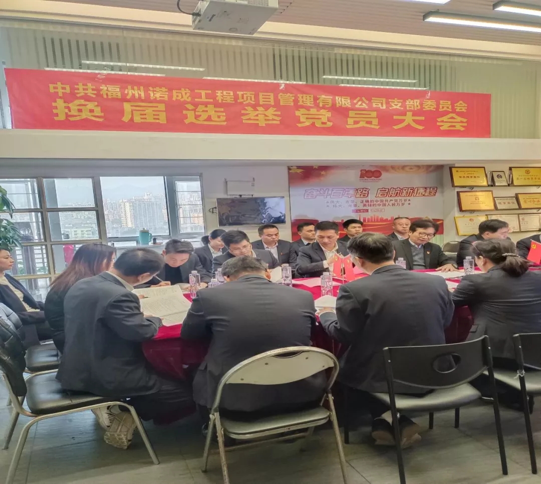 2021年12月18日,福州諾成公司黨支部召開換屆選舉大會(huì),選舉產(chǎn)生了新一屆支部委員會(huì)委員。會(huì)議由組織委員兼紀(jì)檢委員,公司總工程師徐禮盛同志主持。