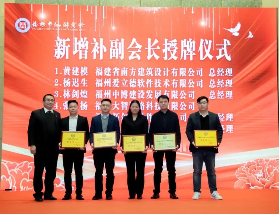 郭建濤會長向新增補(bǔ)的副會長黃建模、楊遲生、林劍煌、張飛楊、鄭玉峰授牌