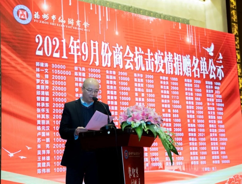 公益先行,從不托辭。2021年9月初,家鄉(xiāng)仙游縣突發(fā)疫情,面對嚴(yán)峻的防控形勢,作為在榕仙游籍的仙商們,毫不猶豫,聞“疫”而動,一場助力家鄉(xiāng)抗擊疫情的戰(zhàn)役驟然打響。9月13日,我們向全體黨員、會員、鄉(xiāng)賢發(fā)出《關(guān)于做好疫情防控工作的通知》,9月14日,發(fā)出《福州市仙游商會助力家鄉(xiāng)抗擊疫情愛心捐款倡議書》,截止9月16日,匯集了132名黨員、會員及熱心鄉(xiāng)賢和2個校友會的愛心捐款,共計2137799.33元。愛心款項小到幾百,大到百萬,錢不分多寡,都是我們商會力所能及范圍內(nèi)對抗擊疫情的無私支持,是對家鄉(xiāng)人民的守望相助!