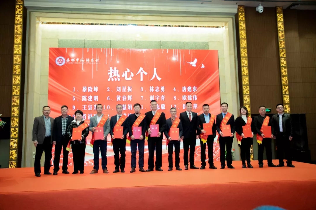 楊鋒監(jiān)事長;羅文棟執(zhí)行會長;唐麗芹常務(wù)副會長兼秘書長;常務(wù)副會長邱清毓、林承東、張懷玉;鄭瑞椿主任向20名商會熱心個人頒獎